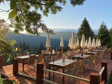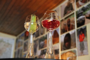 Whether you arrive during the day or at night, professional and informal service awaits you, a cosy hotel restaurant with an open fireplace, a summer terrace, high-quality gastronomy and delicious homemade bread and rolls which we bake every 30 minutes. We are the only hotel in the world to serve our meals on genuine blue onion porcelain and our drinks from beautiful glassware brought here from all over the world. The coffee we brew is brought back from our expeditions to Africa and guests have the opportunity to soak up the travel atmosphere in the restaurant and UNESCO Club. There are hundreds of large-format photographs here which we took in 42 countries throughout Africa and around 500 interesting artefacts which we have brought back from 106 countries around the world. These are only some of the things which go to make up the unique genius loci.
