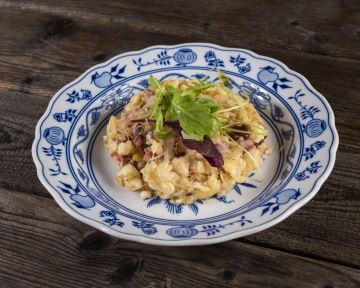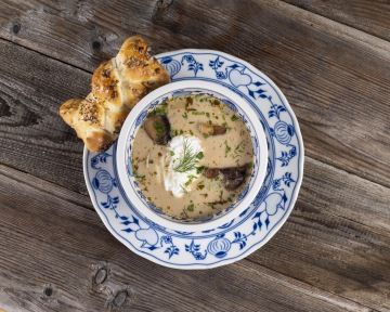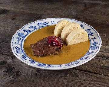 We are very proud of our cuisine. We prefer to use basic ingredients such as onion, garlic, high-quality butter, first-class vegetables, sour cream and genuine French mustard, etc. We only prepare sauces such as creamy root vegetable sauce, goulash or beef and mushroom using eye of round. We cut and stew our cabbage ourselves, mince our own meat for meatloaf or burgers, we never in principle thicken our sauces, we make our own dough for bread and rolls every day, we bake our own croutons specially for every soup, we pan-fry our schnitzels in lard, we carefully marinate our beef tenderloin in spices to serve with a creamy sauce or as steak tartare. We cook wonderful soups, the most popular being traditional Kulajda with a poached egg, tomato, bean, cabbage, garlic or cream of pea soup. We cook our renowned blueberry dumplings every day and bake fresh cakes, in particular blueberry, raspberry, apricot, sea buckthorn or plum with poppyseed.