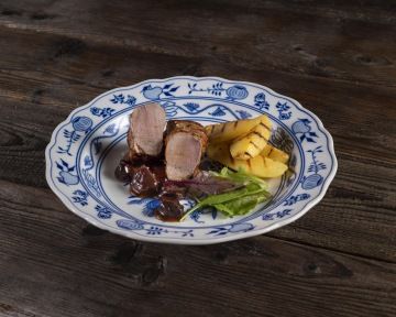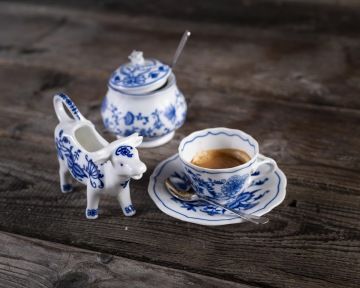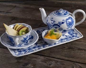 PORCELÁN: Veškerý servis na pravém cibulákovém porcelánu. Jsme jediný hotel na světě.
